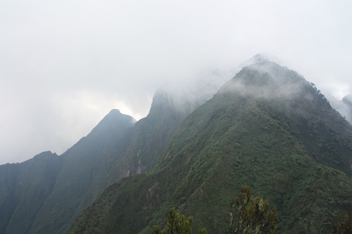 Beim Abstieg erhaschen wir noch einen Blick auf alle drei Gipfel des Sabinyo.