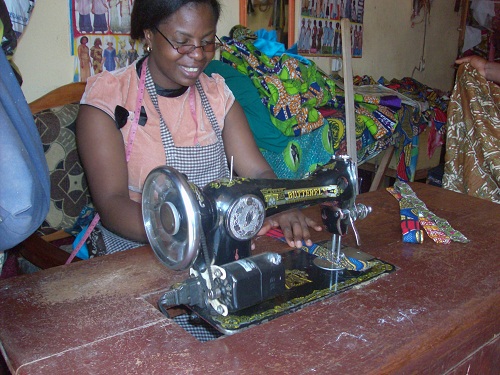 Eine Schneiderin näht unsere Schlüsselanhänger.